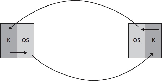 Figuur 2 Kwetsbaarheidscyclus (Scheinkman & Fishbane, 2004). K = Kwetsbaarheid, OS = overlevingsstrategie
